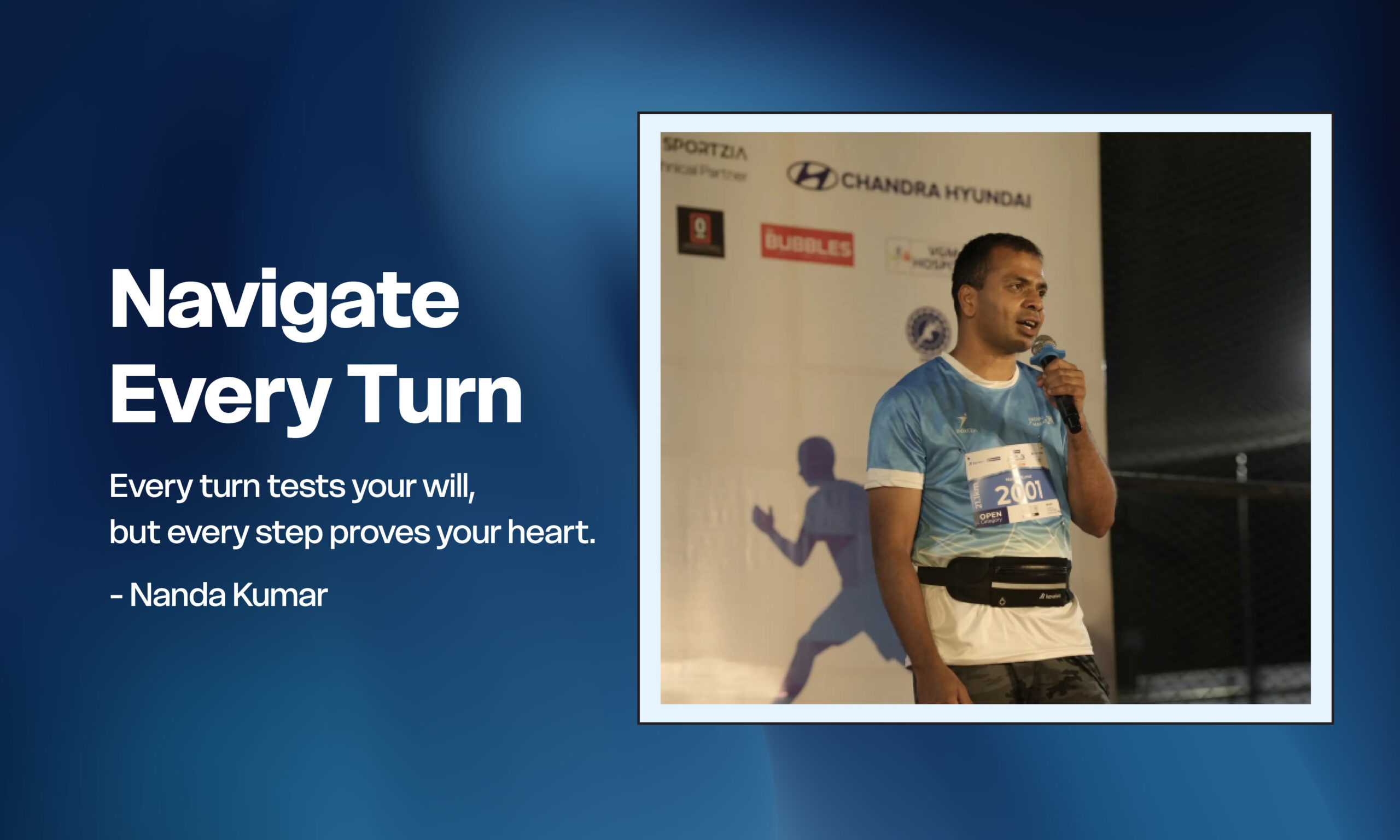 Our Founder & Director, Nanda Kumar, continues to inspire with his marathon journey — having completed 35 full marathons and steadily moving towards his vision of 100 marathons. Each run brings not just a physical milestone but also a life lesson that resonates with leadership, resilience, and purpose. Here, Nanda shares his latest reflection, “Navigate Every Turn” — a reminder that challenges and unexpected turns, when approached with focus and adaptability, can lead us closer to our goals both on the track and in life.
